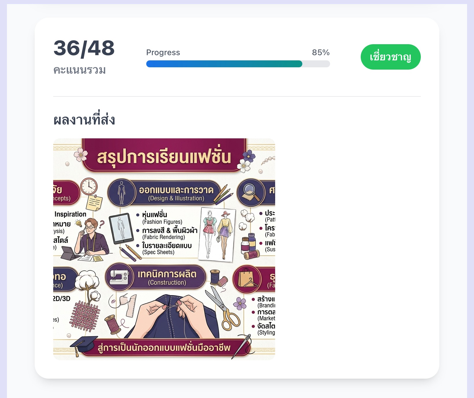 เรียนรู้เกี่ยวกับวิธีการออกแบบแฟชั่นตั้งแต่เริ่มแรกยันแนวคิดหรือหลักการออกแบบแบบแฟชั่นเช่นอาร์ตบอร์ดและอนาคตสามารถนำทักษะเหล่านี้ไปใช้ได้แน่นอนเพราะนี่เลือกที่เกี่ยวกับสายการเรียนตัวเองด้วย นำแนวคิดนี้มาใช้กับการออกแบบนิเทศศิลป์ก็ได้ และอาชีพที่คิดว่าไปด้วยกันได้ ออกแบบกราฟฟิก ออกแบบเสื้อผ้า โปสเตอร์หรือการออกแบบอื่นสามารถทำได้หมดเลย